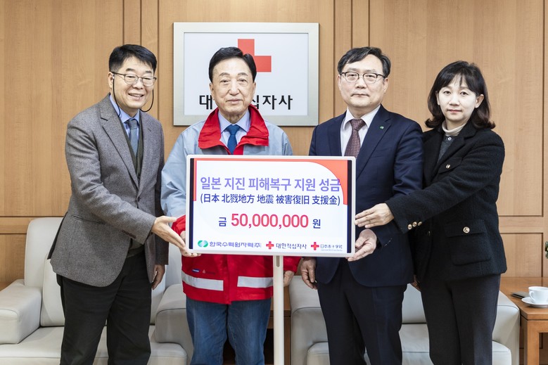 한국수력원자력(사장 황주호, 이하 한수원)이 29일 지난달 발생한 지진으로 어려움을 겪고 있는 일본 호쿠리쿠 지역의 피해 복구를 위해 성금 5000만원을 대한적십자사에 전달했다.
