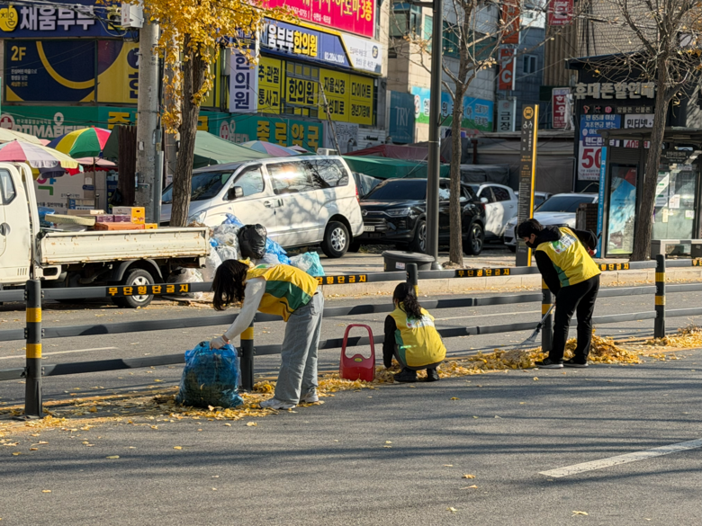 이에 봉사자들은 인도와 차도를 중심으로 쌓인 낙엽과 은행나무 열매를 집중적으로 수거했다. 바람에 날려 도로까지 퍼진 낙엽을 빗자루와 긁개로 모아 정리하고 악취가 심한 은행 열매는 골목을 순회하며 봉투에 담아 제거했다. 특히 차량 통행이 많은 도로변과 보행이 많은 인도 주변은 미끄럼 사고 가능성이 높아 낙엽과 은행 열매를 꼼꼼히 제거해 안전한 통행 환경 조성에 힘썼다.