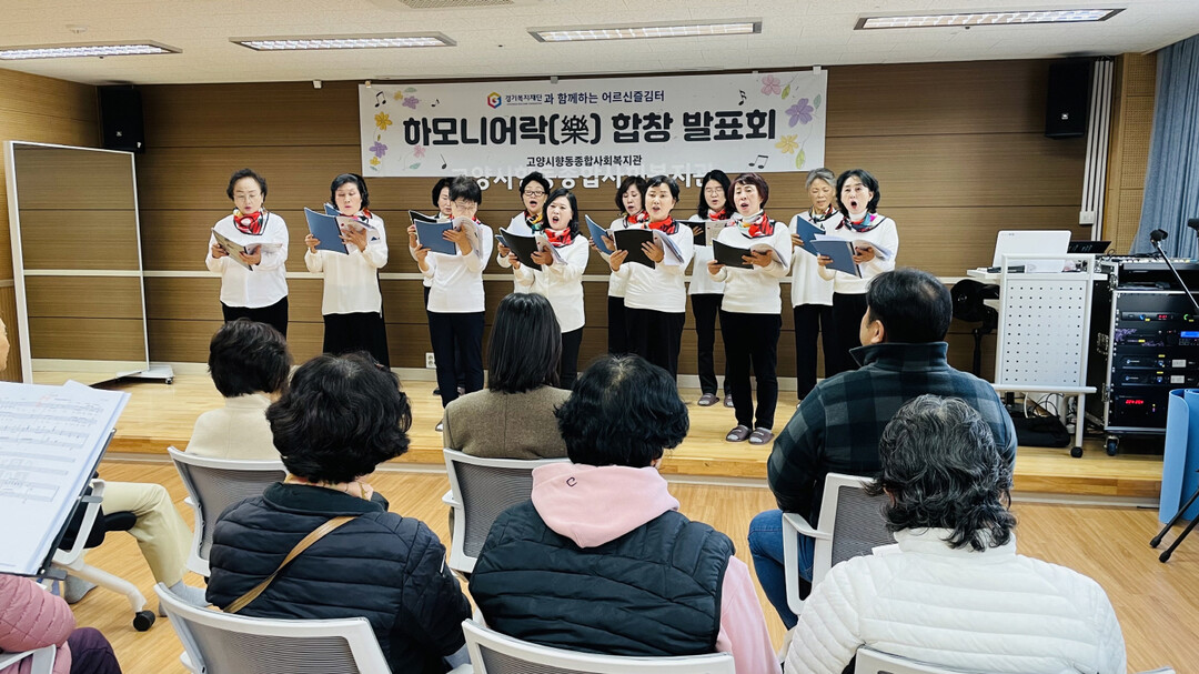 [부자동네타임즈 = 김인수 기자] 고양시향동종합사회복지관(양복선 관장)은 지난 10일 사회복지관 강당에서 어르신 합창모임 ‘하모니어락’의 발표회를 진행했다.