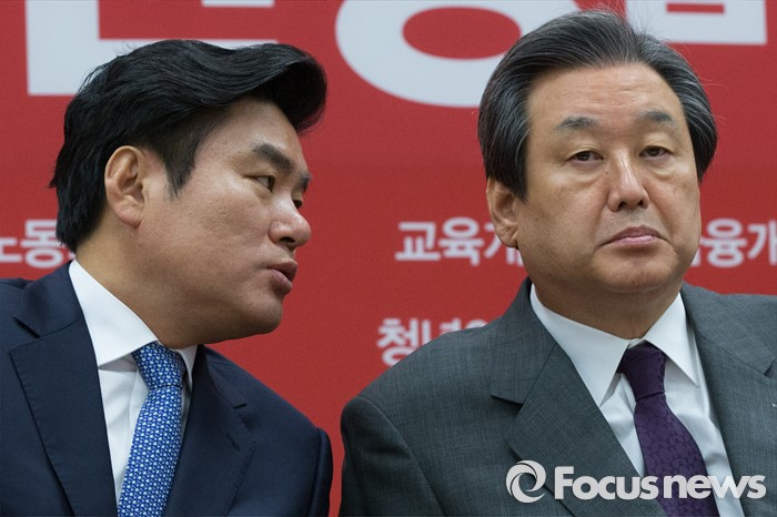 | △ 김무성(오른쪽) 새누리당 대표와 원유철 원내대표가 5일 오전 서울 여의도 국회에서 열린 최고위원회의에서 대화하고 있다. <사진제공=포커스뉴스> |