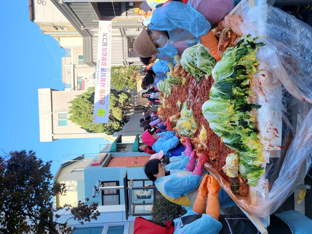 이날 나눔 행사는 관산동 새마을부녀회 회원과 직능단체 회원 등 70여 명이 참여하여 이른 아침부터 직접 농장에서 생산한 배추 1,200여 포기로 정성껏 김장김치를 담갔다. 김장이 끝난 이후 김장김치 230여 박스를 관내 소재 여래사에서 기부한 쌀 70포와 함께 독거노인 등 소외된 취약계층 가구에 직접 전달하며 건강과 안부를 살폈다.