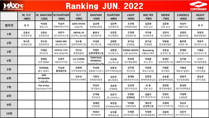 MAX FC 2022년 6월 종합 랭킹 발표.