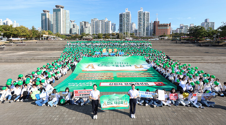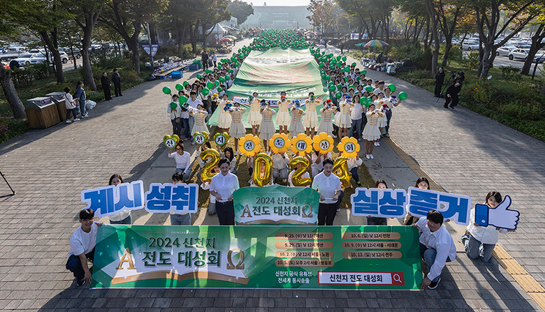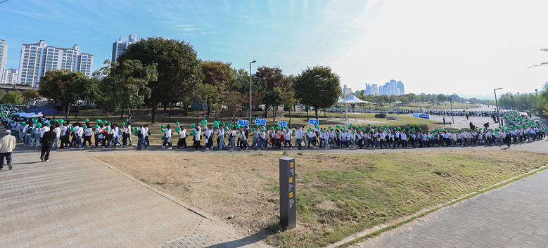 ▲13일 뚝섬한강공원에서 신천지 과천‧왕십리교회 성도 2300여 명이 ‘신천지 전도 대성회’ 홍보 퍼포먼스를 펼치고 있다.  [사진 제공 = 신천지 과천교회]