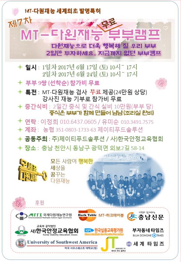 제 7차 MT-다원재능 부부캠프 참여자 모집_MT-다원재능 세계최초 발명특허