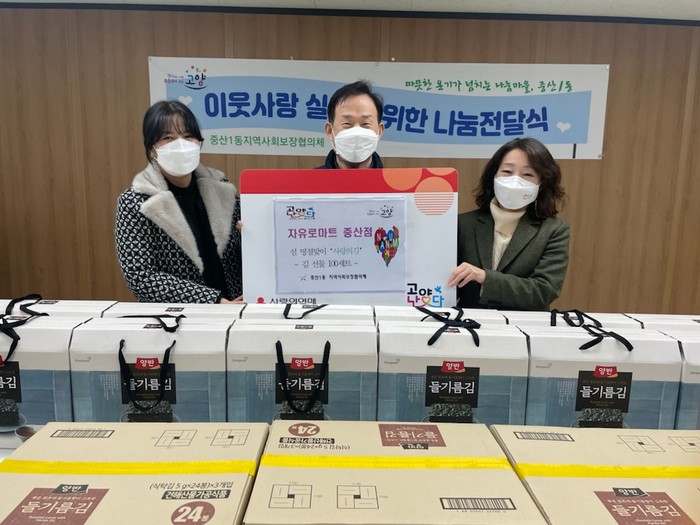 [부자동네타임즈 김인수기자] 고양시 일산동구 중산1동은 지난 25일 ㈜오동 자유로마트(대표 조창현)가 설 명절을 맞이하여 관내 소외된 이웃을 위해 김 100상자(약 100만원 상당)를 기탁했다고 전했다.