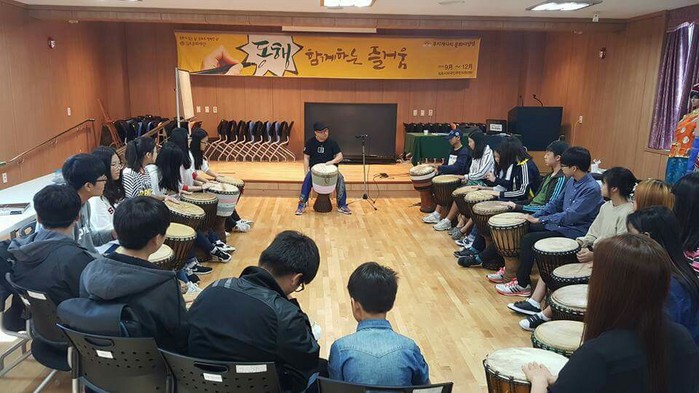 이날 행사에는 중도입국 자녀 12명과 내국인 고등학생 10명이 참여한 가운데 문화다양성 전문강사 권미영 강사님과 함께 다른 나라의 문화·풍습·전통 등을 바라보는 청소년들의 다양한 관점을 공유하는 시간과 젬베 악기 연습으로 마음을 여는 시간을 가졌다.