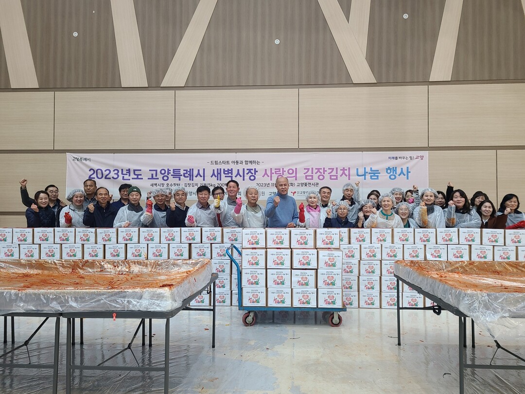 [부자동네타임즈 = 김인수 기자] 고양시농업인새벽시장호수장터협의회가 지난 21일 고양꽃전시관에서 김장김치 나눔행사를 실시한 뒤 김장김치 500kg를 드림스타트 아동에게 후원했다.