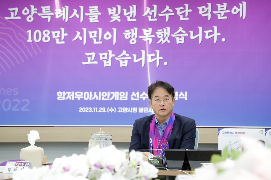 이날 포상금 전달식은, 역대 최고의 성적으로 고양시의 명예를 드높이고 국위를 선양한 항저우아시안게임 출전 선수들에게 고마움을 전하기 위해 마련되었다. 이동환 고양특례시장은 입상 선수 7명에게 직접 포상금을 전달했다.