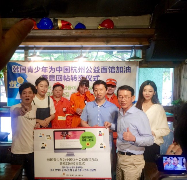 '한국 청소년들이 응원하는 ‘중국 항저우 공익국숫집’ 응원선플사이트 중국에 전달'