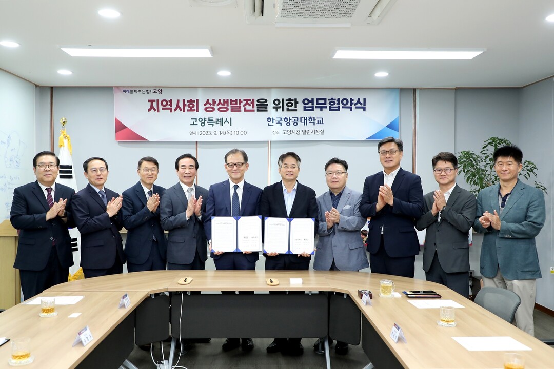 [부자동네타임즈 = 김인수 기자] 지난 14일 시청 열린시장실에서 이동환 고양특례시장과 허희영 한국항공대 총장 그리고 양 기관 관계자 등이 참석한 가운데 한국항공대와 ‘지역사회 혁신 및 상생발전을 위한 업무협약’을 체결했다.