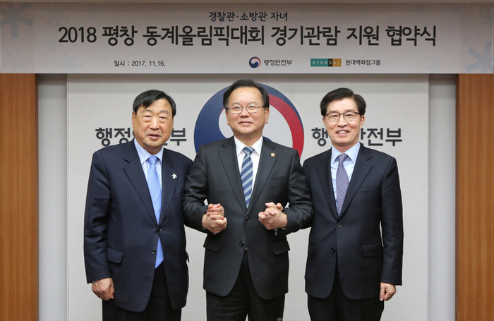 현대백화점그룹, '순직 경찰관·소방관 자녀 평창 동계올림픽 관람 지원 업무 협약' 체결