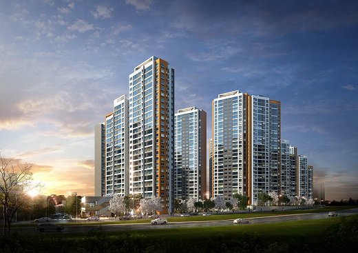 △ 대림산업이 경남 양산시 덕계 토지구획정리사업지구에 선보일 'e편한세상 양산덕계' 투시도. <사진제공=대림산업> |