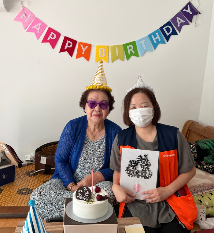 코로나19로 인해 가정방문에 어려움이 있었지만, 마스크 착용·손소독 등 방역수칙을 준수하며 올해도 총 37명의 어르신에게 케이크 전달을 완료했다.