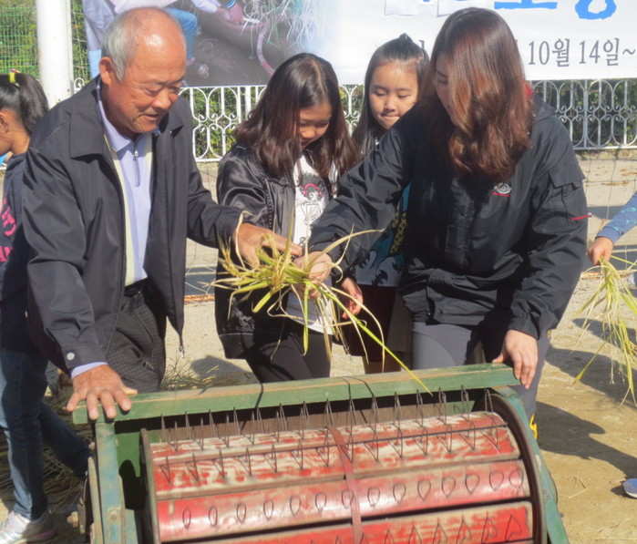 | △ 지난해 대영초 탈곡체험 모습. |