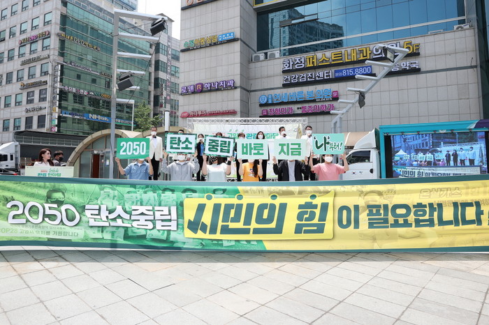 이어 시립합창단의 합창 공연에 맞춰 참석자 전원이 ‘2050 탄소중립 바로 지금 나부터!’를 주제로 탄소중립 깃발을 흔드는 퍼포먼스도 선보였다.