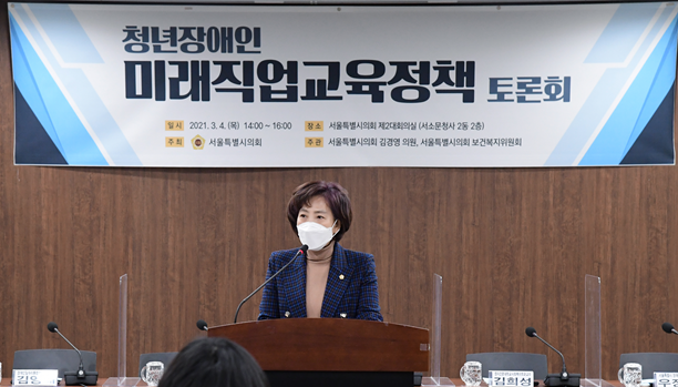 [부자동네타임즈 김인수기자] 서울시의회 보건복지위원회 김경영 의원(더불어민주당, 서초구 제2선거구)은 지난 3월 4일(목) 14시 서울시의회 제2대회의실에서 청년장애인 미래직업 교육정책 토론회를 주관하여 개최했다.