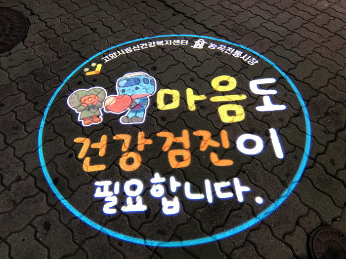 로고젝터는 능곡시장 소상공인 마음건강 토탈서비스의 일환으로 능곡전통시장을 이용하는 고양시민의 정신건강 인식개선을 위해 설치됐다.