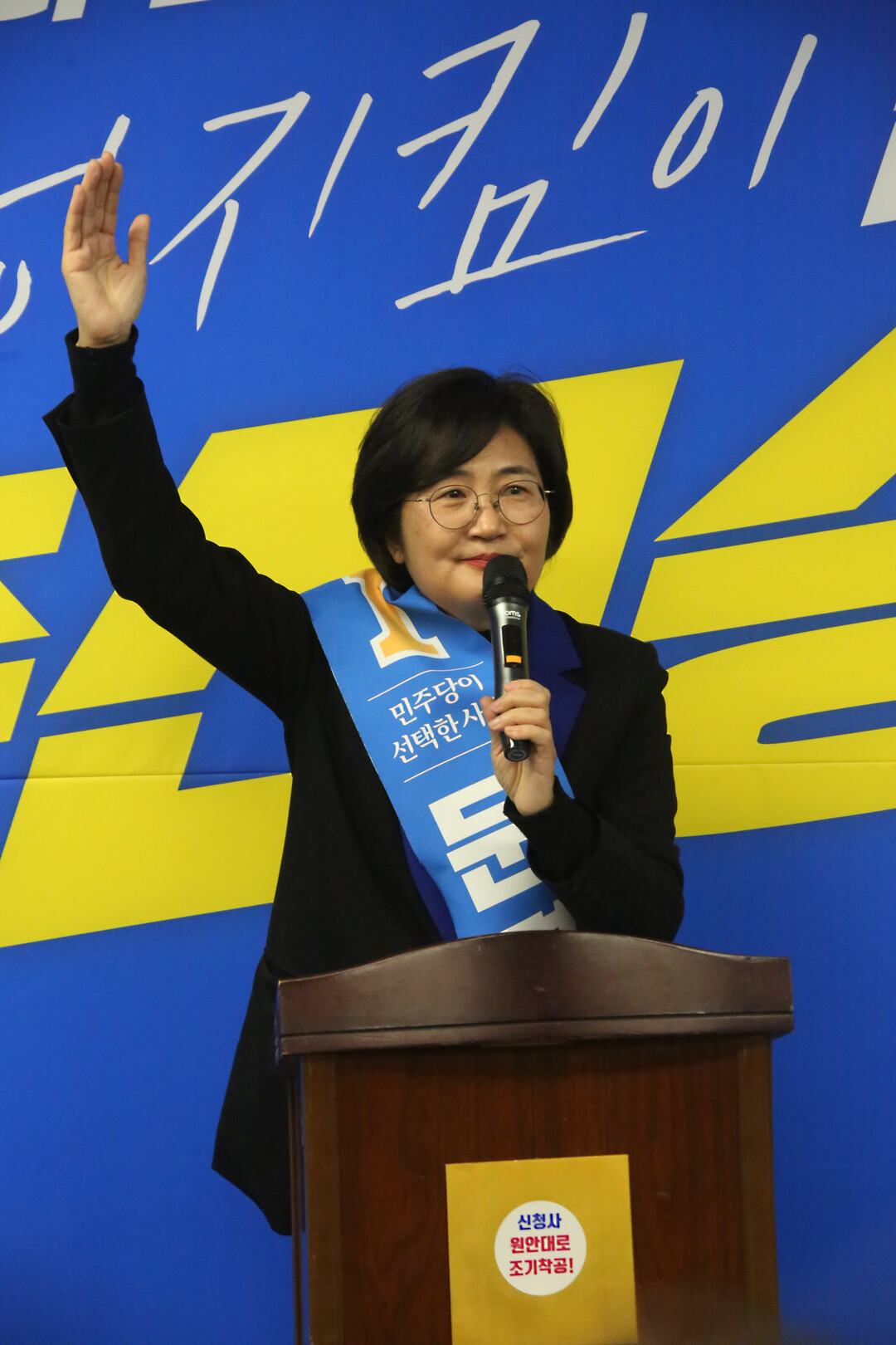 문명순 후보와 참석자들은 “이재명과 함께 윤석열 심판”“경제가 위기일 때 민생이 무너질때 문명순”을 외치며 선거운동을 시작하는 각오를 다졌다.