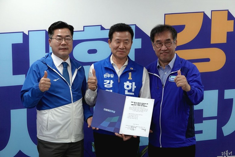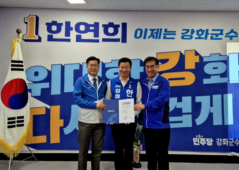 맹성규 국회 국토교통위원장과 박찬대 더불어민주당 원내대표, 한연희 더불어민주당 강화군수 후보가 3일(목) 강화지역 교통인프라 확충을 위한 정책 협약식을 진행했다. 이번 재보궐 선거를 통해 윤석열 정부의 실정을 심판하고, 협약을 통해 교통취약지역인 강화지역의 교통 인프라 확충을 함께 추진한다는 취지를 담고 있다.