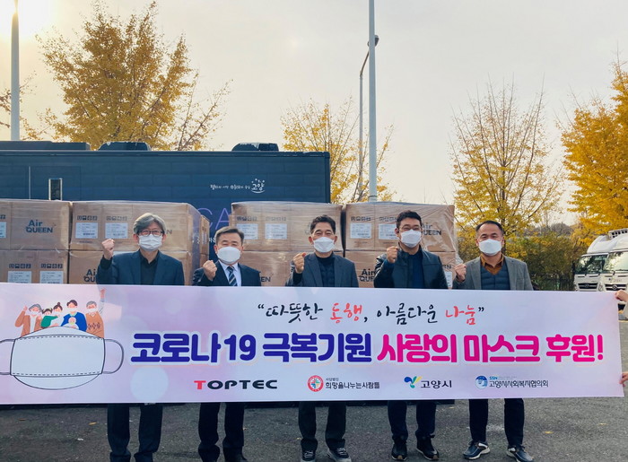 기탁 받은마스크는 고양시사회복지협의회 및 사회복지시설을 통해 노인, 장애인 등 취약 계층에 배분될 예정이다.