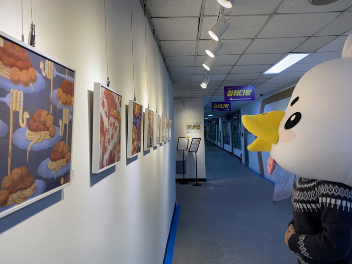[사진설명] 청취다방 마스코트 DD가 작품을 감상하고 있다.
