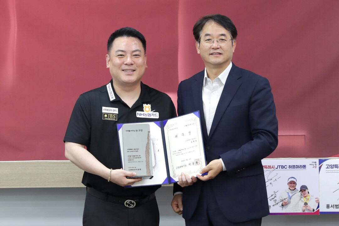 한편 이동환 고양특례시장은 “조재호, 김가영 선수는 PBA·LPBA 최고의 스타이자 고양시의 자랑”이라며 “앞으로 고양시 홍보대사로서 고양시의 매력을 전 세계에 알리는 데 최선을 다해달라”고 당부했다.