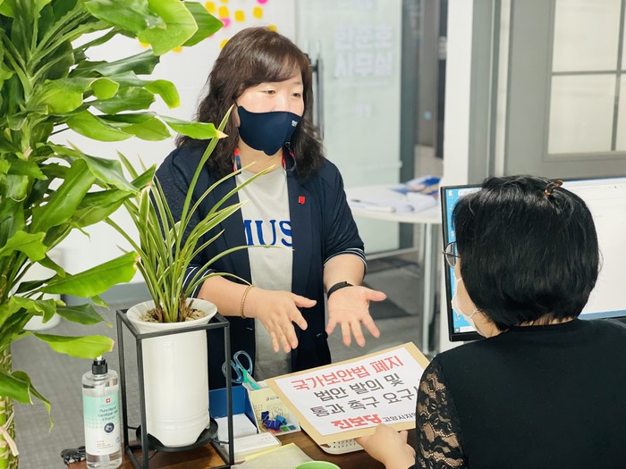 더불어민주당 한준호 의원실에 방문한 전민선 부위원장은 “박물관에 있어야 할 국가보안법이 아직도 남아서 칼춤을 추고 있습니다. 10일만에 국회입법청원 10만명이 돌파할 정도로 폐지에 대한 민심이 높은 만큼 국민들의 목소리에 귀기울여 달라”며 법안 통과를 요청했다.
