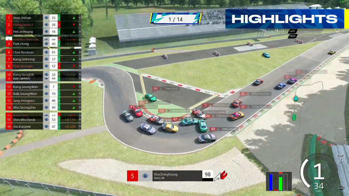 초반 LAP에서는 강신홍 선수가 선두로 달리며 2,3위로 달리는 김동영, 최유준(16) 선수와 치열한 경쟁을 보여주었다. 5 LAP에서 김동영 선수가 PTP 사용 없이 강신홍 선수를 제쳐내며, 1위 자리를 빼앗았다. 6 LAP에서 평상시 상위권 그리드에 잘 들어오지 못하던 백승원(23) 선수가 최유준 선수를 제치며 3위까지 올라왔다.
