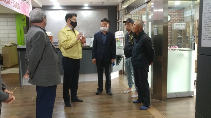 소독현장을 찾은 이재철 고양시 제1부시장은 소독업체의 노고를 격려하면서 코로나19 극복을 위하여 업소들의 적극적인 소독 동참 이행을 당부하였다.