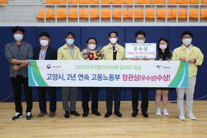 [부자동네타임즈 김인수기자] 고양시는 "지난 10월 5일 정부고양합동청사에서 고용노동부가 주관하는 ‘2020 전국 지방자치단체 일자리대상’의 공시제(지역일자리 목표 공시제) 부문에서 우수상(장관상)을 수상했다."고 밝혔다. 이로써 고양시는 경기도 내에서 유일하게 2년 연속 우수상을 수상했다.