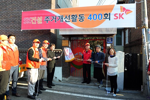 조기행 SK건설 사장은 "임직원들의 자발적인 모금과 재능기부로 시작된 주거개선 활동이 벌써 400회를 맞아 감회가 깊다"며 "앞으로도 소외된 이웃들의 주거환경을 개선해 안정된 보금자리를 마련해주는 나눔문화를 실천해 나가겠다"고 다짐했다.