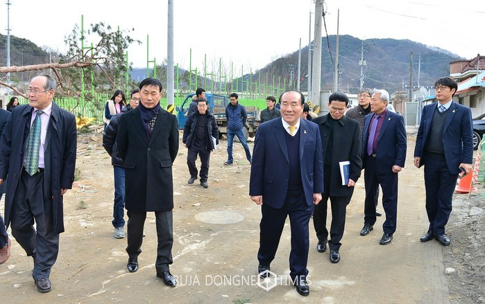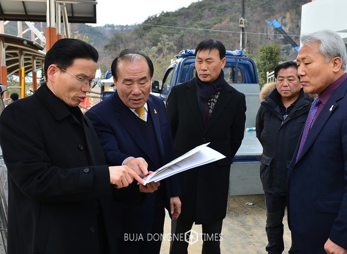 | △교육감은 동행한 시설지원단 김두환 단장과 정운용 과장으로부터 공사진행 및 시설현황 등을 보고 받고 학생과 학부모들이 불편을 겪지 않도록 남은 기간 공사와 비품구비 등 개교 준비 등 개교준비에 최선을 다해 줄 것을 당부했다 |