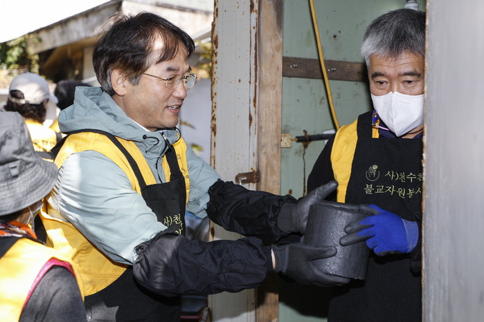 [부자동네타임즈 김인수기자] 이동환 고양특례시장이 11일 고양시 불교자원봉사단 ‘천수천안’과 함께 연탄 나누기 봉사를 진행했다. 이동환 시장은 “솔선수범하여 어려운 이웃을 돕는 자원봉사자 여러분께 감사하다.”며 “오늘 흘린 땀과 열정이 어려운 이웃들에게 따뜻한 온기로 전해지길 바란다.”고 말했다.