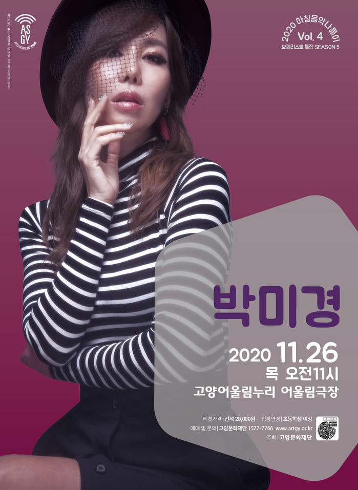 11월 26일로 예정된 2020년 마지막 공연의 주인공은 압도적인 가창력으로 객석을 들었다 놨다 하는 원조 걸크러쉬 박미경이 함께 한다. ‘이유 같지 않은 이유’, ‘이브의 경고’ 등 남녀노소 흥을 돋우는 댄스곡과 여전히 노래방 애창곡으로 사랑받는 ‘기억속의 먼 그대에게’ 등 발라드 장르 모두 탁월한 보컬리스트 박미경의 진면목을 만날 수 있다.