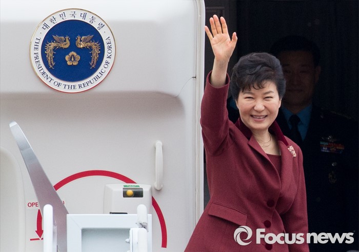 △ 박근혜 대통령이 지난 14일 오후 성남 서울공항에서 7박 10일 일정으로 G20 정상회의와 아시아태평양경제협력체(APEC) 정상회의, 아세안+3(ASEAN+한·중·일) 및 동아시아(EAS) 정상회의 참석차 출국을 하며 인사를 하고 있다. <사진제공=포커스뉴스>