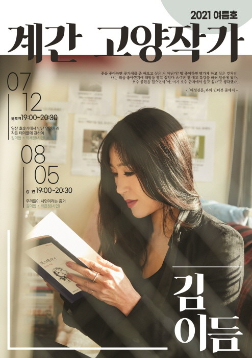김이듬 작가와 직접 만날 수 있는 자리도 마련돼 있다. 오는 7월 12일에는 북토크 ‘일산 호숫가에서 만난 연인들과 작은 테이블에 관하여’가 열린다. 오는 8월 5일에는 강연 ‘우리들이 시인이라는 증거’가 아람누리도서관(온.오프라인 동시)에서 진행된다.