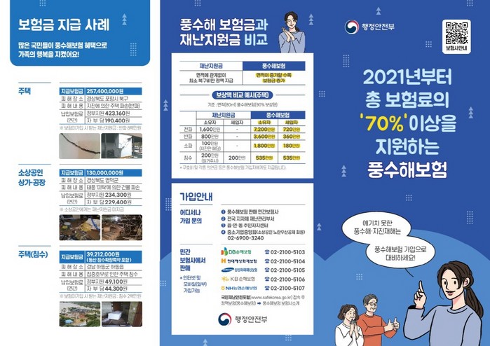 풍수해보험은 대설ㆍ강풍ㆍ태풍ㆍ홍수ㆍ지진 등 자연재해로 발생하는 시민의 재산피해를 정부가 지원하는 정책보험이다.