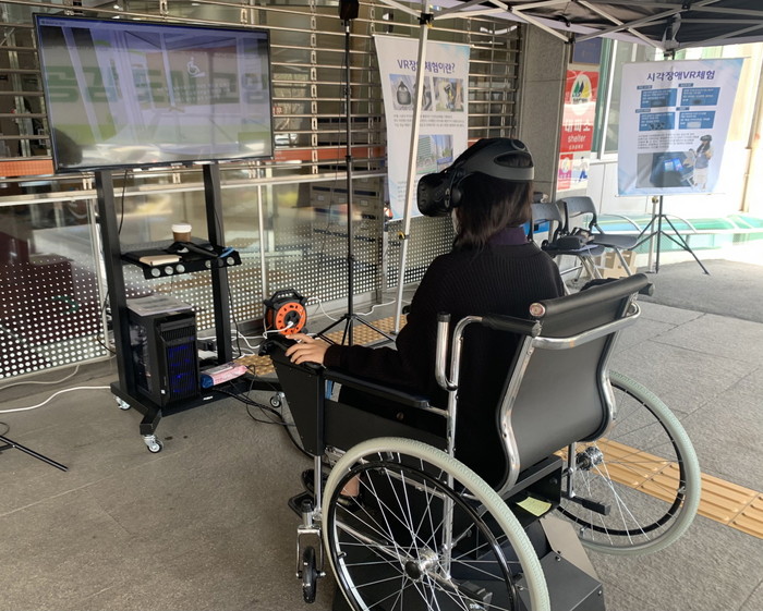 VR 장애 인식 개선사업은 체험자가 VR 기기를 착용해 장애인이 일상에서 느끼는 어려움을 체험하고 공감할 수 있는 프로그램으로 구성됐다. 프로그램은 지체장애인 체험과 시각장애인 체험 두 가지로 진행됐다. 특히 지체장애인 체험은 움직이는 4D 휠체어를 활용해 높은 턱을 지나가거나 횡단보도를 건널 경우 덜컹거림을 직접 느낄 수 있도록 기획됐다.