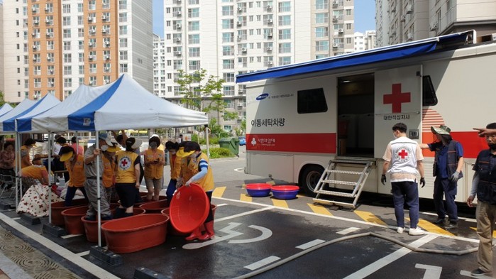 [부자동네타임즈 김인수기자] 고양시 덕양구 삼송적십자봉사회(회장 김연자) 회원 등 15명은 관내 임대아파트지역에 거주하는 거동불편 취약계층에 대해 6일 ‘이불빨래‧이동세탁 서비스’ 봉사활동(이하 이불빨래 봉사)을 펼쳤다.