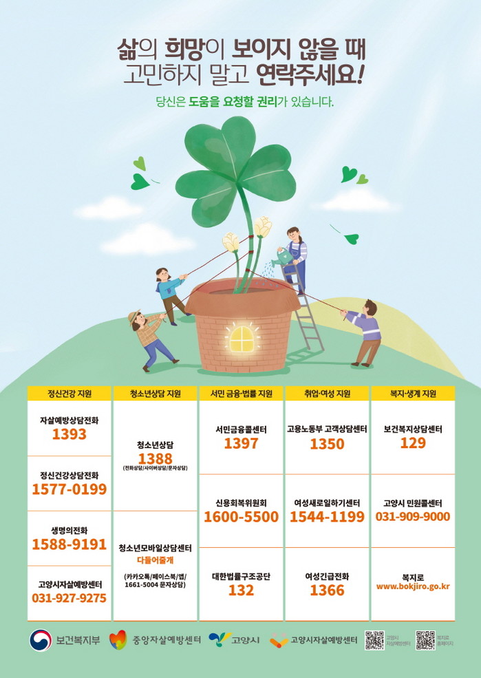 기타 상담 및 치료비 지원 문의는 고양시자살예방센터, 센터 관련 정보는 홈페이지에서 확인할 수 있다.