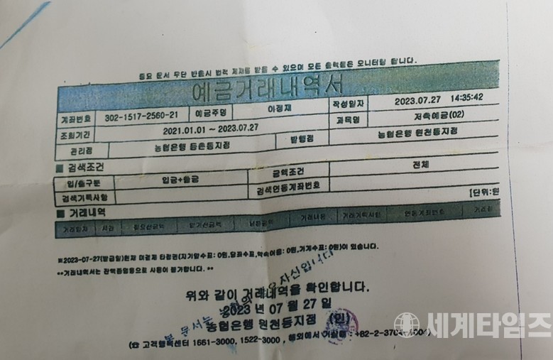 | ▲ 이모 대한민국월남전참전자회 전 감사가 개설한 계좌거래 내역서 표지 |