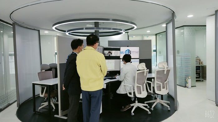[사진설명] 11월 1일 이춘표 제2부시장이 명지병원 버츄얼케어센터를 방문해 재택 치료 시스템 운영 현황을 살펴보고 있다.