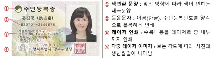 [사진설명] 신형 주민등록증 보안강화 및 위·변조 식별요령.