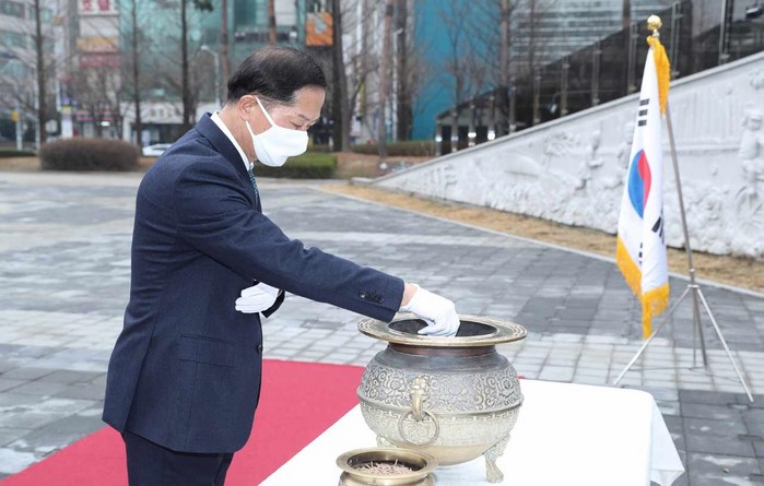 이 날 참배는 제101주년 3. 1절 기념식을 대신한 행사로서, 코로나19 위기대응 단계가 ‘심각’으로 격상됨에 따라 지역사회로의 감염 확산을 방지하고 고령의 독립유공자 유족의 안전을 최우선으로 생각하여 마련된 자리였다.