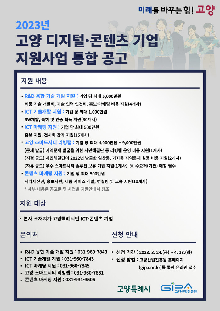 [사진설명] 고양 디지털·콘텐츠 기업 지원 사업 통합 공고문.