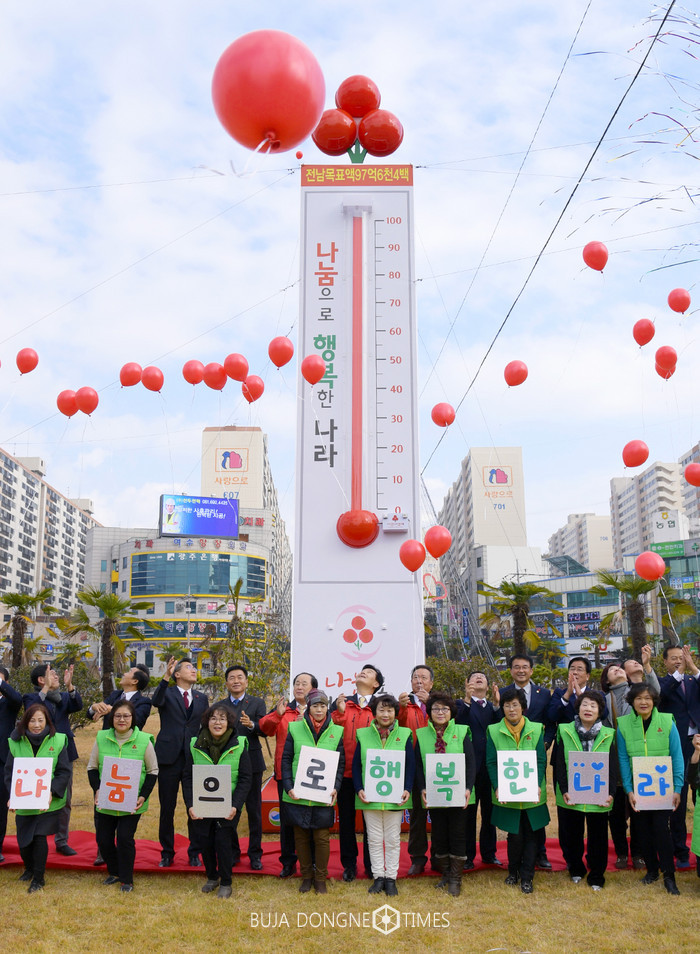 여수시(시장 주철현)에 따르면 27일 오후 여서동 13호 광장 로터리에서 전남사회복지공동모금회가 주관하는 ‘전남 동부권 사랑의 행복 온도탑 제막식’이 열렸다.