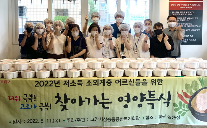 [부자동네타임즈 김인수기자] 고양특례시(시장 이동환) 삼송동종합복지회관이 지난 11일 말복을 맞이해 지역 내 취약계층 어르신 166가구에 삼계탕을 전달했다.