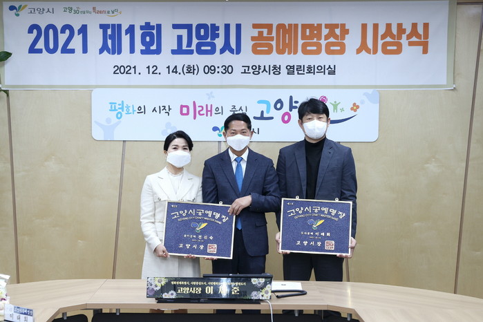 [부자동네타임즈 김인수기자] 고양시가 2021년도 ‘고양시 공예명장’으로 도자분야의 이태희(도예공방 다움 대표) 씨를, 종이분야의 전진숙(전진숙한지조형연구소 대표) 씨를 선정하고 14일 시상식을 개최했다.