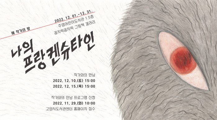 [부자동네타임즈 김인수기자] 세계그림책 특성화도서관인 고양특례시(시장 이동환) 주엽어린이도서관이 오는 12월 1일부터 한 달 동안 꼼지락 꼼지락 그림책 갤러리에서 전시회 「메 작가의 방, 나의 프랑켄슈타인」을 개최한다.