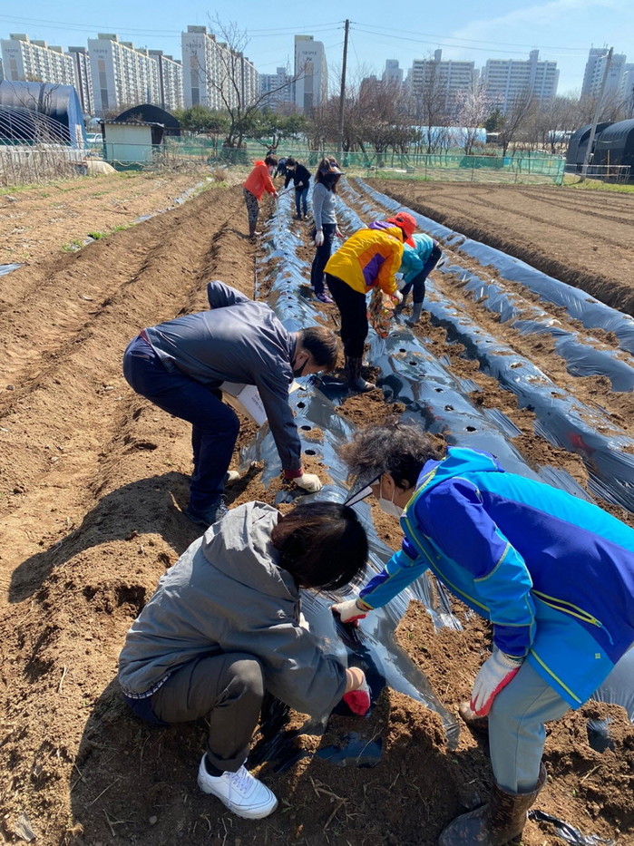 주교동 지역사회보장협의체(위원장 김용희) 주관으로 실시한 이번 행사는 체육회, 새마을회, 주교동장 및 직원 등 20여 명이 참여했으며, 텃밭 330㎡(약 100평)에 씨감자 20kg을 정성스레 심었다.
